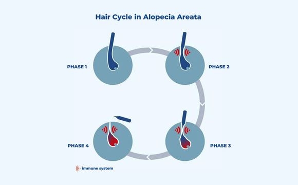 Haargroei bij alopecia areata is onvoorspelbaar. Klinische observaties laten echter het volgende zien:
